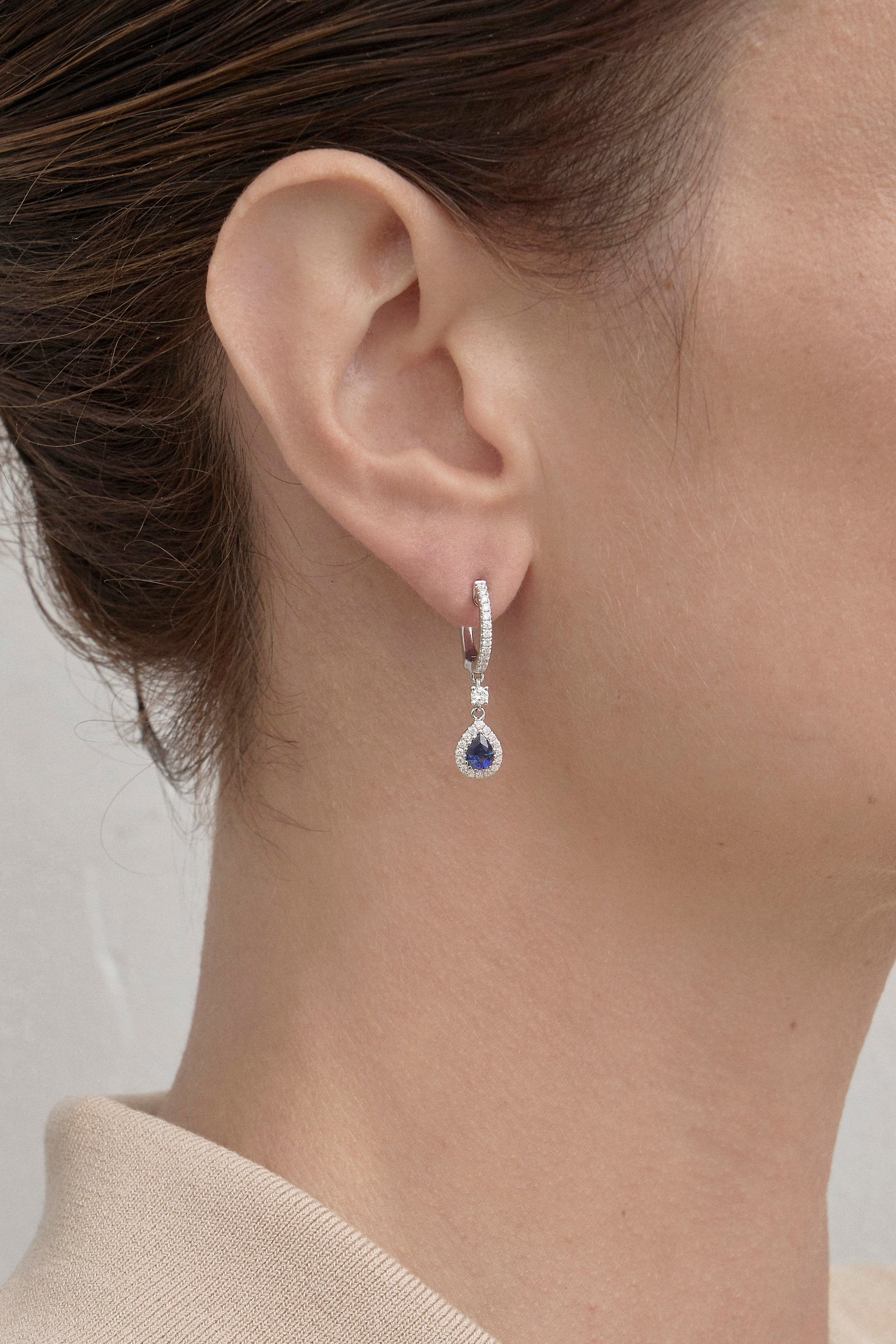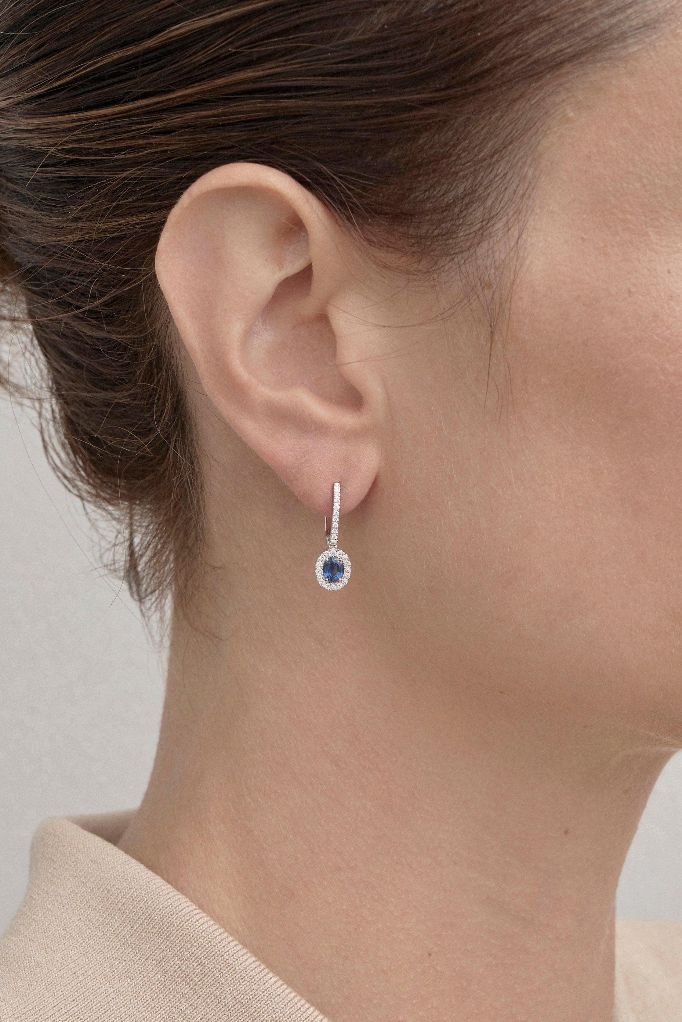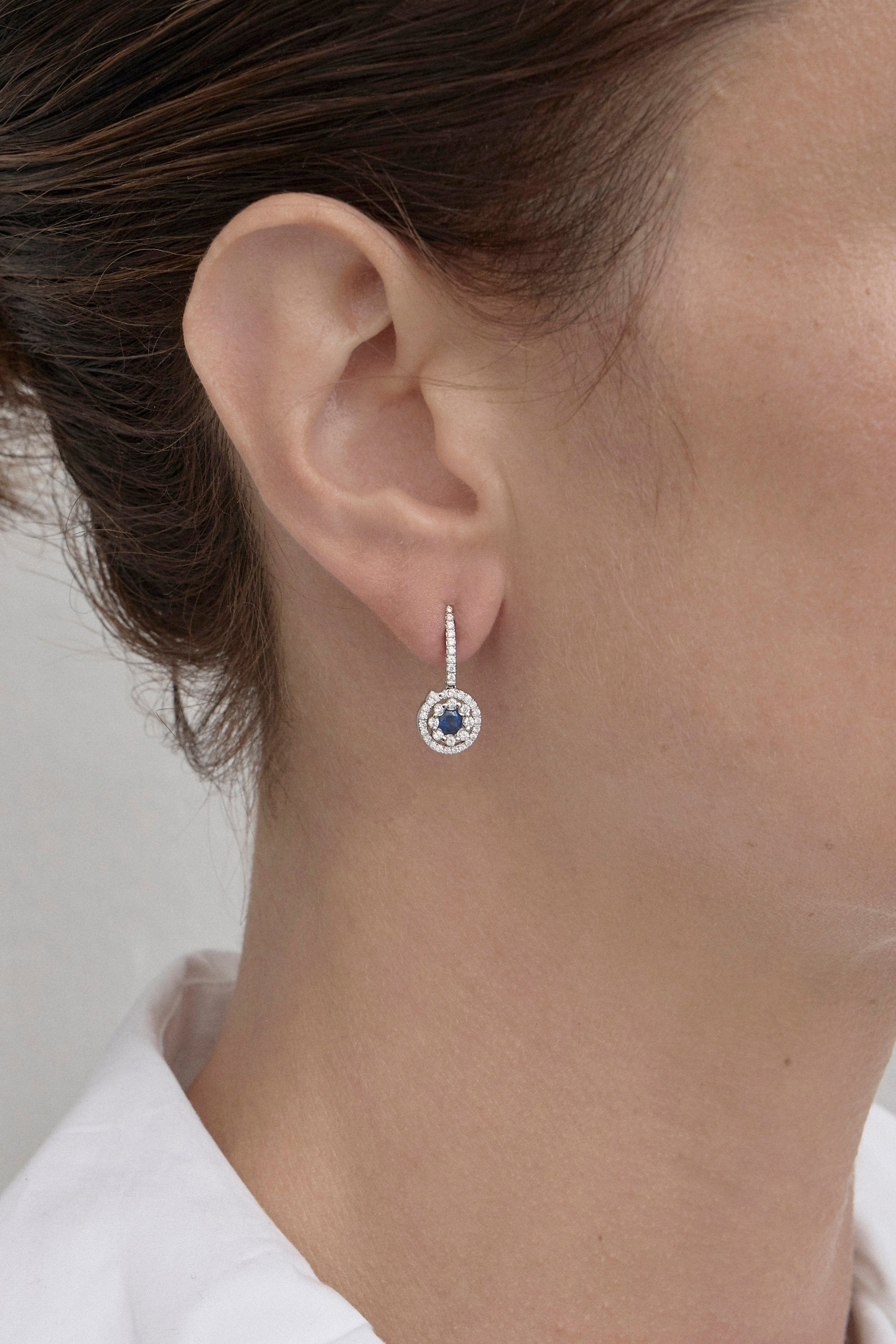 Sapphire Halo Drop Earrings