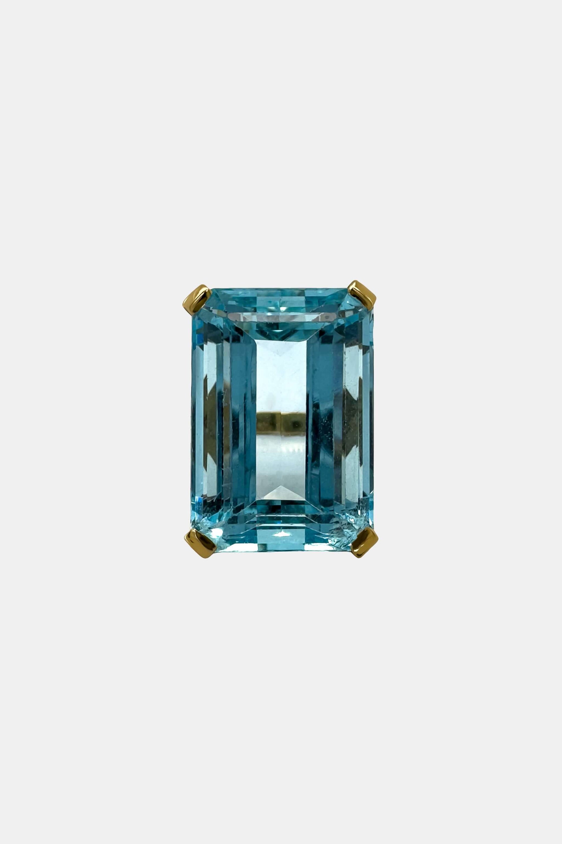 Architectural European vintage silhouettes takes centre-stage with our Mid Century Aquamarine Ring, circa 1940. Showcasing a highly coveted 25ct emerald-cut Santa Maria aquamarine with its mesmerising blue hue, this exquisite ring crafted in 18K gold, is European mastery at its finest. Sculptural modernism and timeless elegance imbued in this ring ensure a legacy that will be treasured generations.