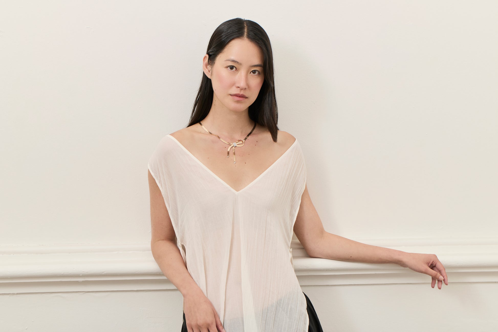 Showcasing quintessential Italian mastery and a graceful expression of 1940s elegance, our Mid-Century Bow Diamond Necklace is crafted with meticulous attention to detail. Evoking a sense of opulence indicative of the lavish era, this necklace is crafted in radiant 14K rose gold, and defined by a finely woven herringbone chain that drapes with effortless fluidity. Old European-cut diamonds totalling 0.30ct are thoughtfully positioned as an encasing for the curved chain, creating a refined bow effect. This highly coveted piece of refined artistry is destined to become a treasured heirloom for generations to come.