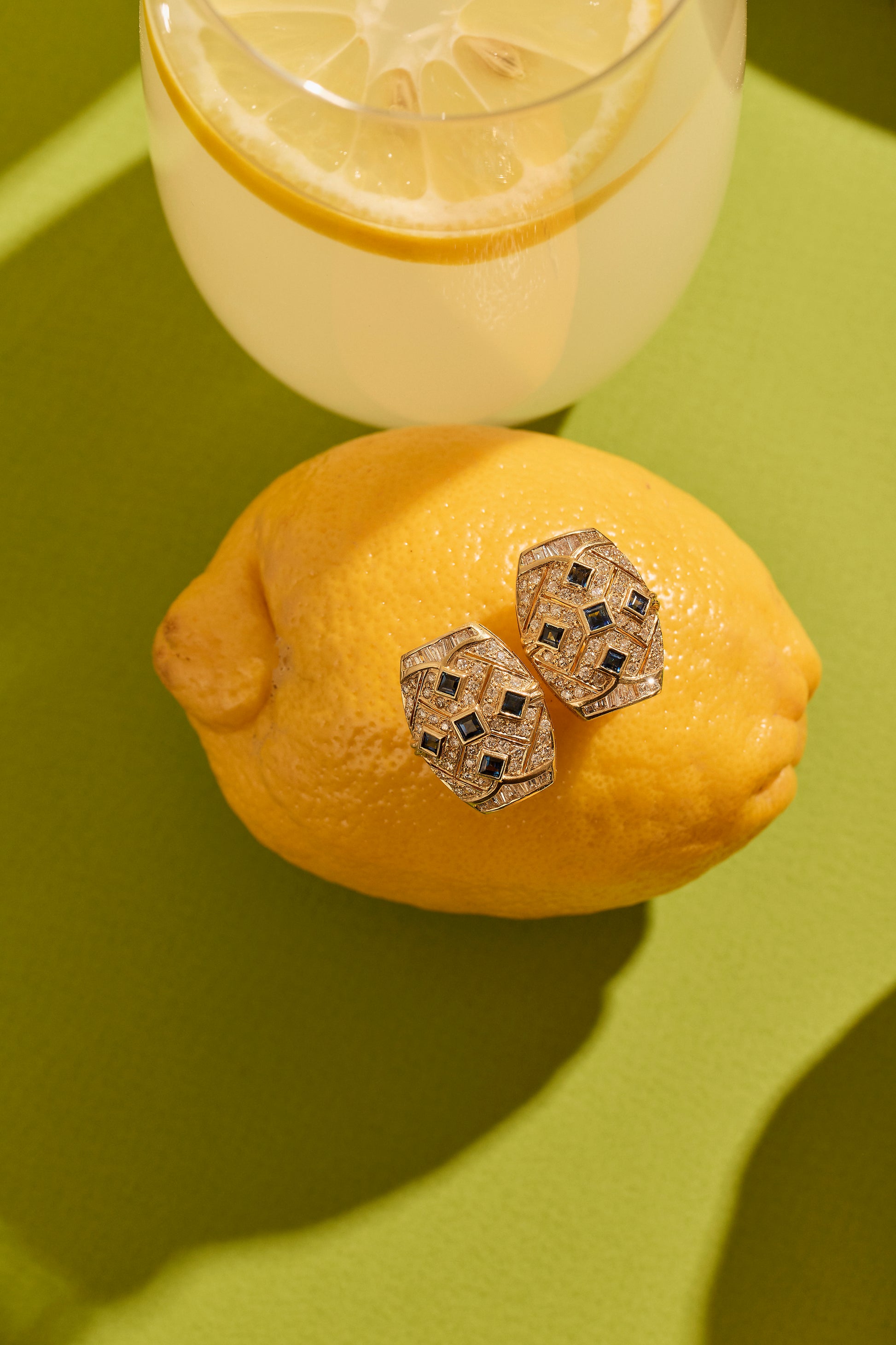 Sculptural elegance imbued with the resplendence of late Mid-Century modernism hero in these sumptuous vintage sapphire earrings, circa 1970. Featuring ten square baguette-cut sapphires totalling 2.04ct, and Old European-cut diamonds totalling 2.00ct, these exquisite gems exude mesmerising brilliance, casting a radiant glow that commands admiration. Set within the warm embrace of 18K yellow gold, every curve and contour is expertly crafted, reflecting artisanal skill and fine attention to detail.