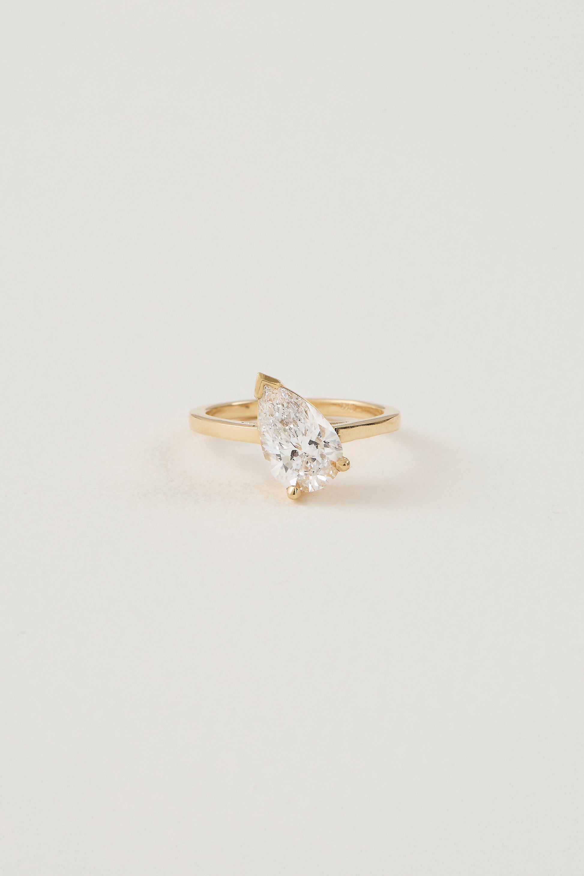 A refined expression of modern romanticism, this Pear Diamond Ring showcases a stunning pear-shaped diamond set in a classic three-prong setting that captures light beautifully with its distinctive teardrop silhouette. Crafted in rich 18K yellow gold, the design features a pear-shaped diamond positioned at a subtle angle, adding elegance and a touch of differentiation to this contemporary piece. A bold yet graceful symbol of love, this ring is made to be treasured for a lifetime.